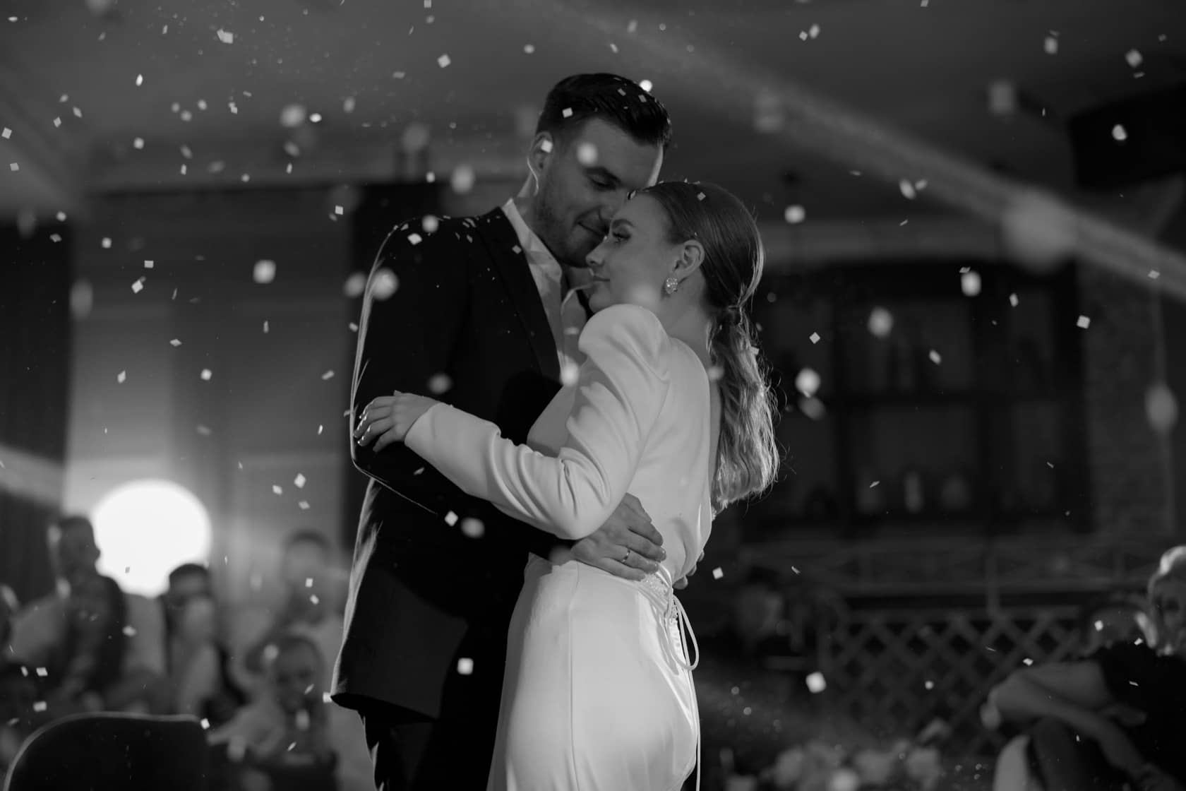После церемонии гости отправились в ресторан, где их ожидала эстетика нуара. Для этого серьезно поработали со светорежиссурой, которая изменила до неузнаваемости ресторан.